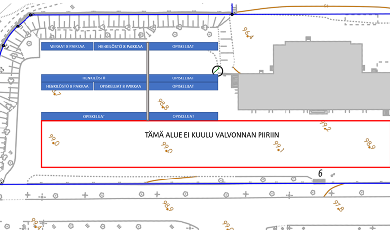 Pysäköintivirhemaksu kirjoitetaan myös, jos ajoneuvo on pysäköity pysäköintialueen ja lukion väliselle alueelle. Lyseon takapihalle pysäköinti on ehdottomasti kielletty.